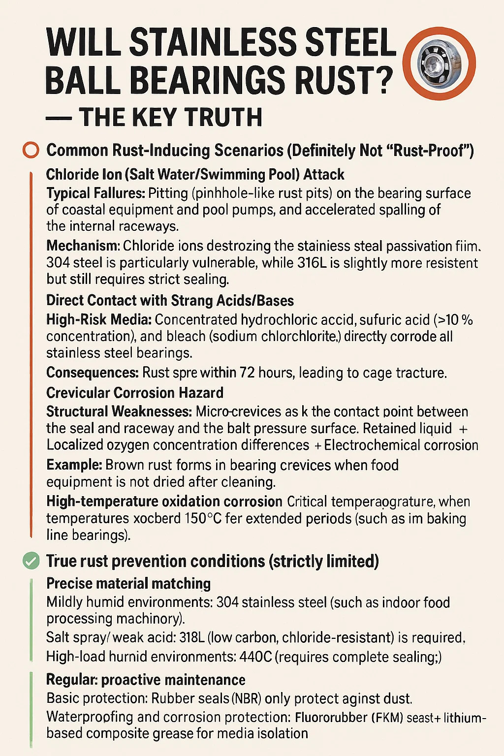 সমালোচনামূলক ভুল: বিয়ারিংগুলি ইনস্টল করার জন্য কার্বন ইস্পাত সরঞ্জামগুলি ব্যবহার করার ফলে স্টেইনলেস স্টিলের এম্বেড হয়ে লোহার চিপগুলি ঘটে, একটি গ্যালভানিক প্রভাব তৈরি করে যা জারা ত্বরান্বিত করে।