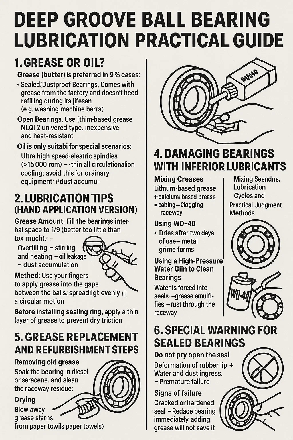 সিল করা/ডাস্টপ্রুফ বিয়ারিং: কারখানা থেকে গ্রীস সহ আসে এবং এর জীবদ্দশায় রিফিল করার প্রয়োজন হয় না (যেমন, ওয়াশিং মেশিনের বিয়ারিং)।